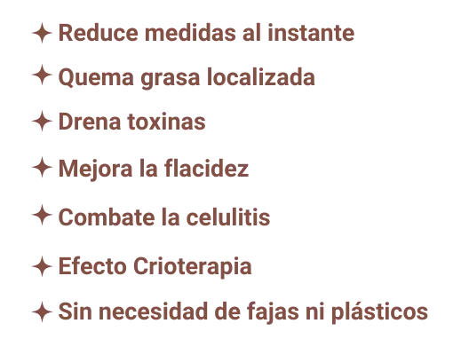 Con nuestro producto puedes realizar masajes en el cuerpo únicamente con las manos, con el objetivo de reducir medidas, eliminar grasa localizada, moldear el cuerpo y hacerlo más firme.