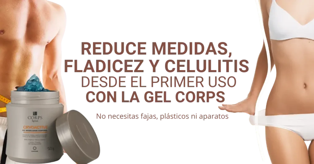 Gel Reductor y celulitis Corps, es una gel corporal diseñada para reducir medidas, combatir la celulitis y disminuir el aspecto de las estrías gracias a su efecto de crioterapia, que promueve la eliminación de toxinas y eleva la temperatura corporal.